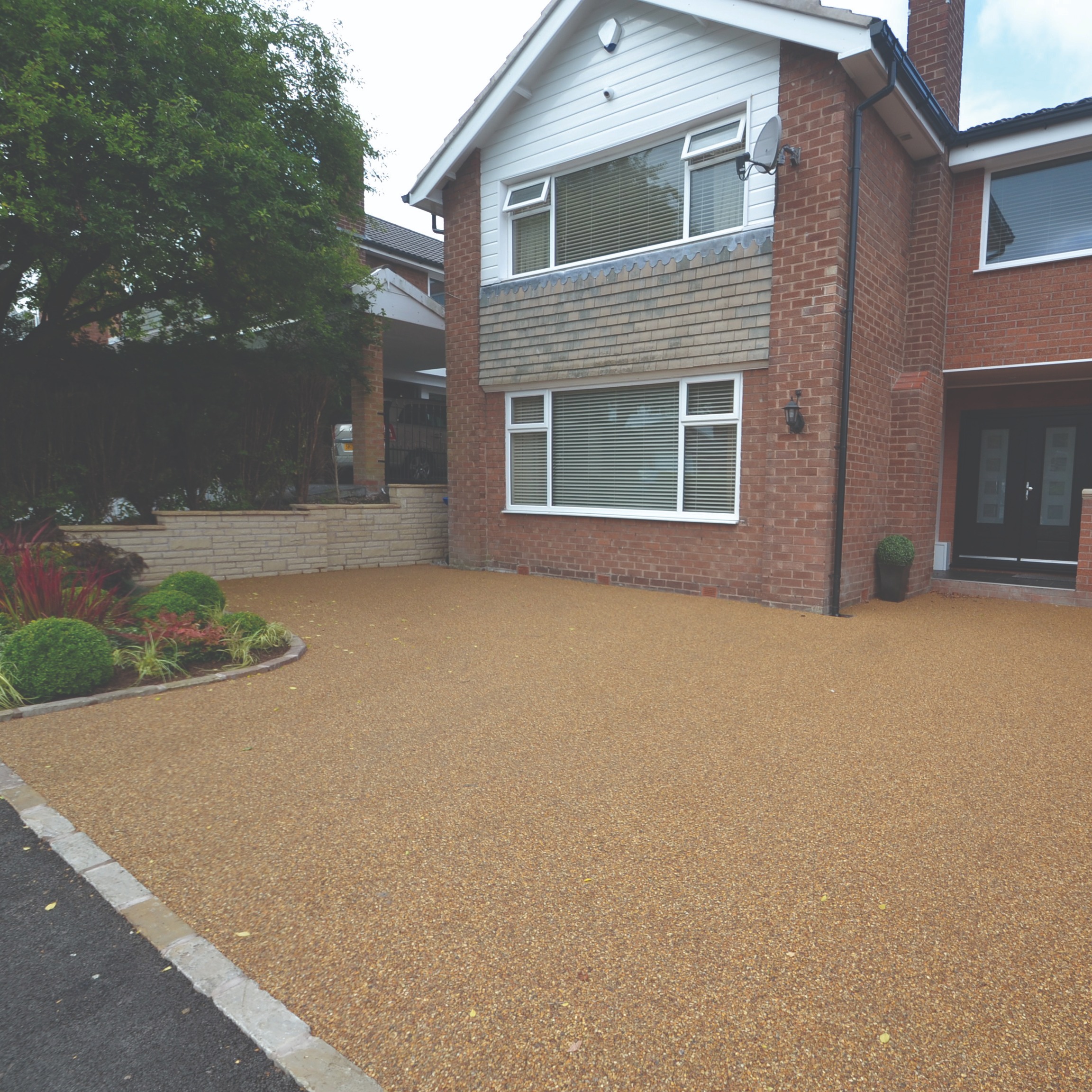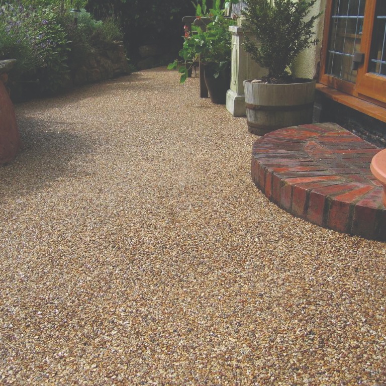 The basic premise is that a decorative or coloured gravel is "glued" to an existing solid surface. The result is an extremely hard-wearing surface that is fairly resistant to weeds and relatively low-maintenance.